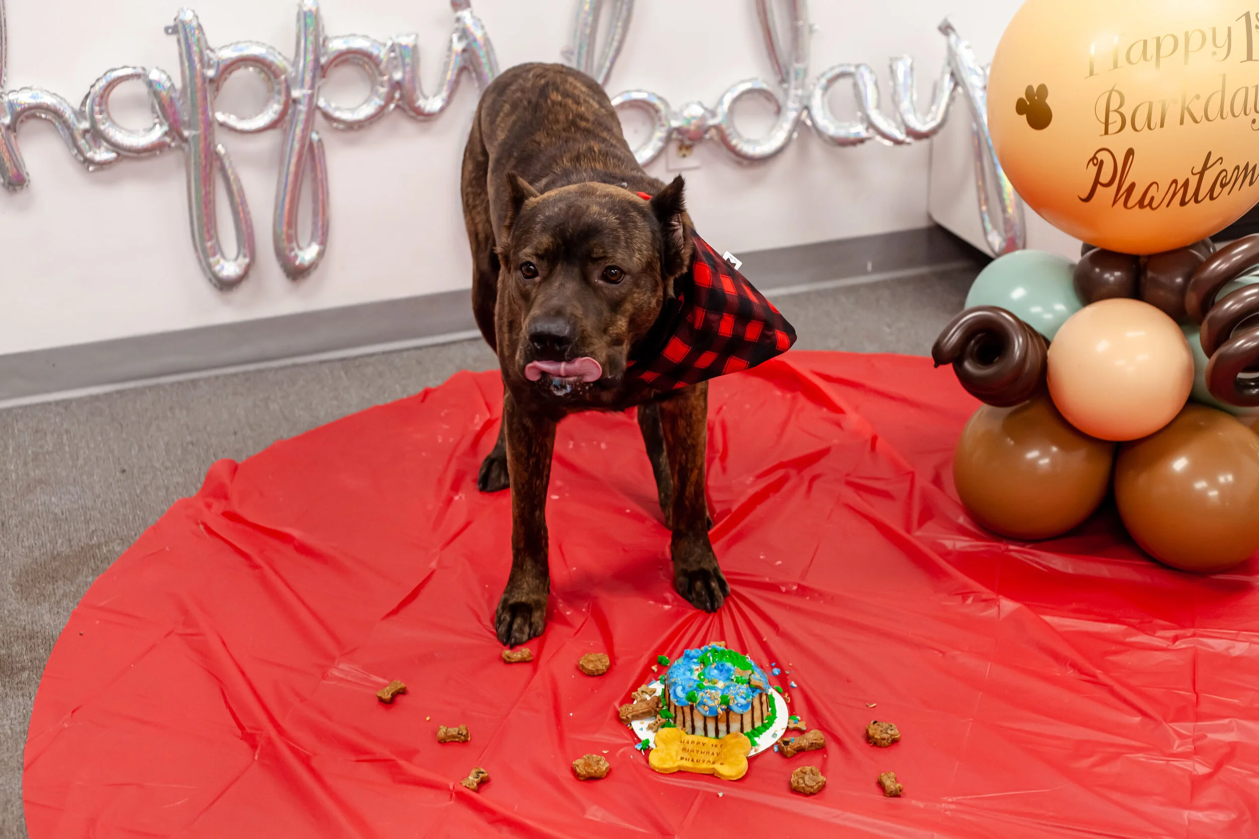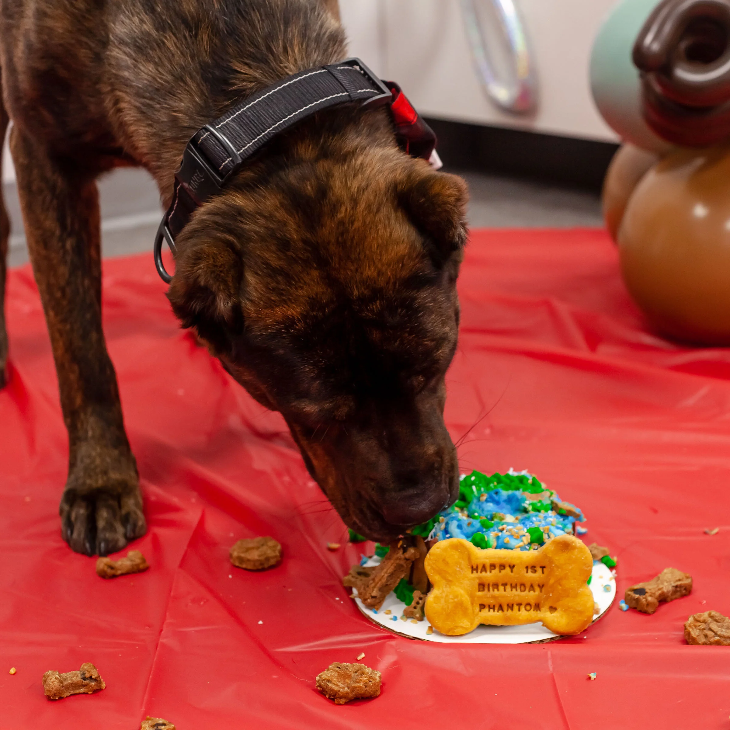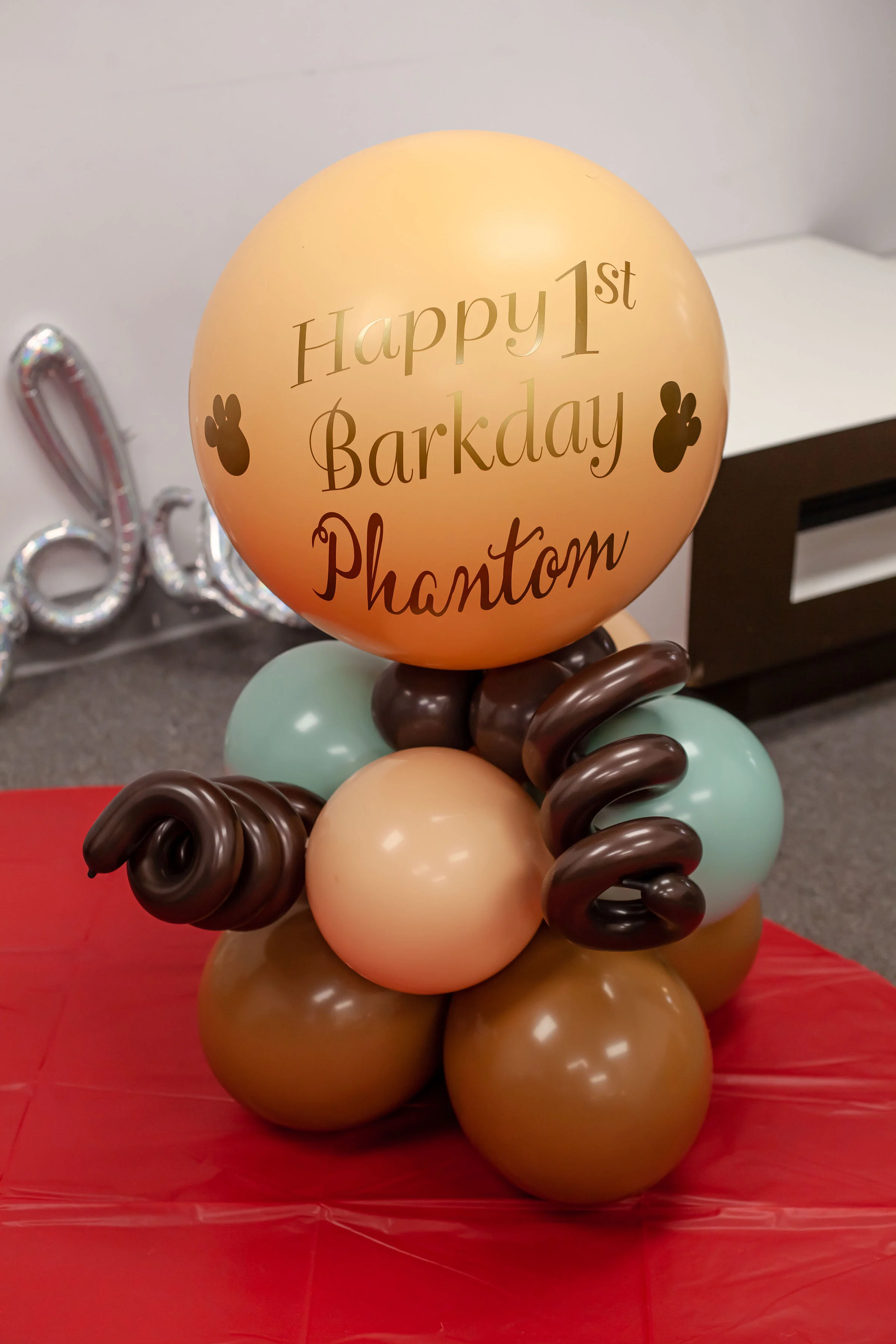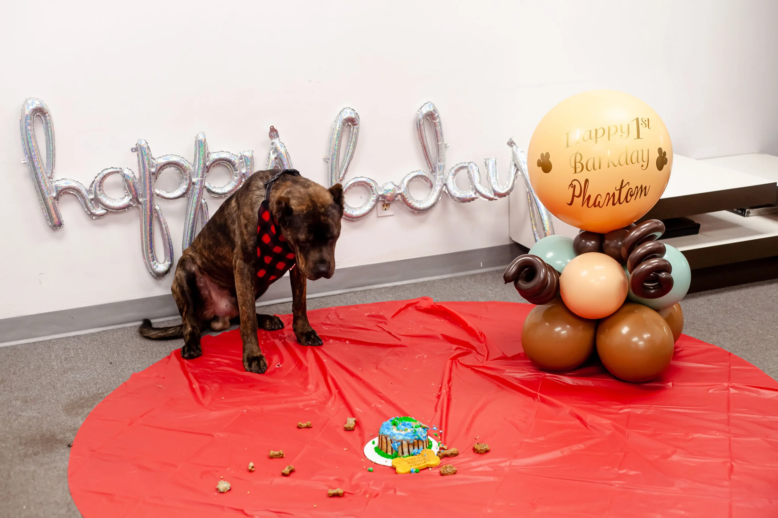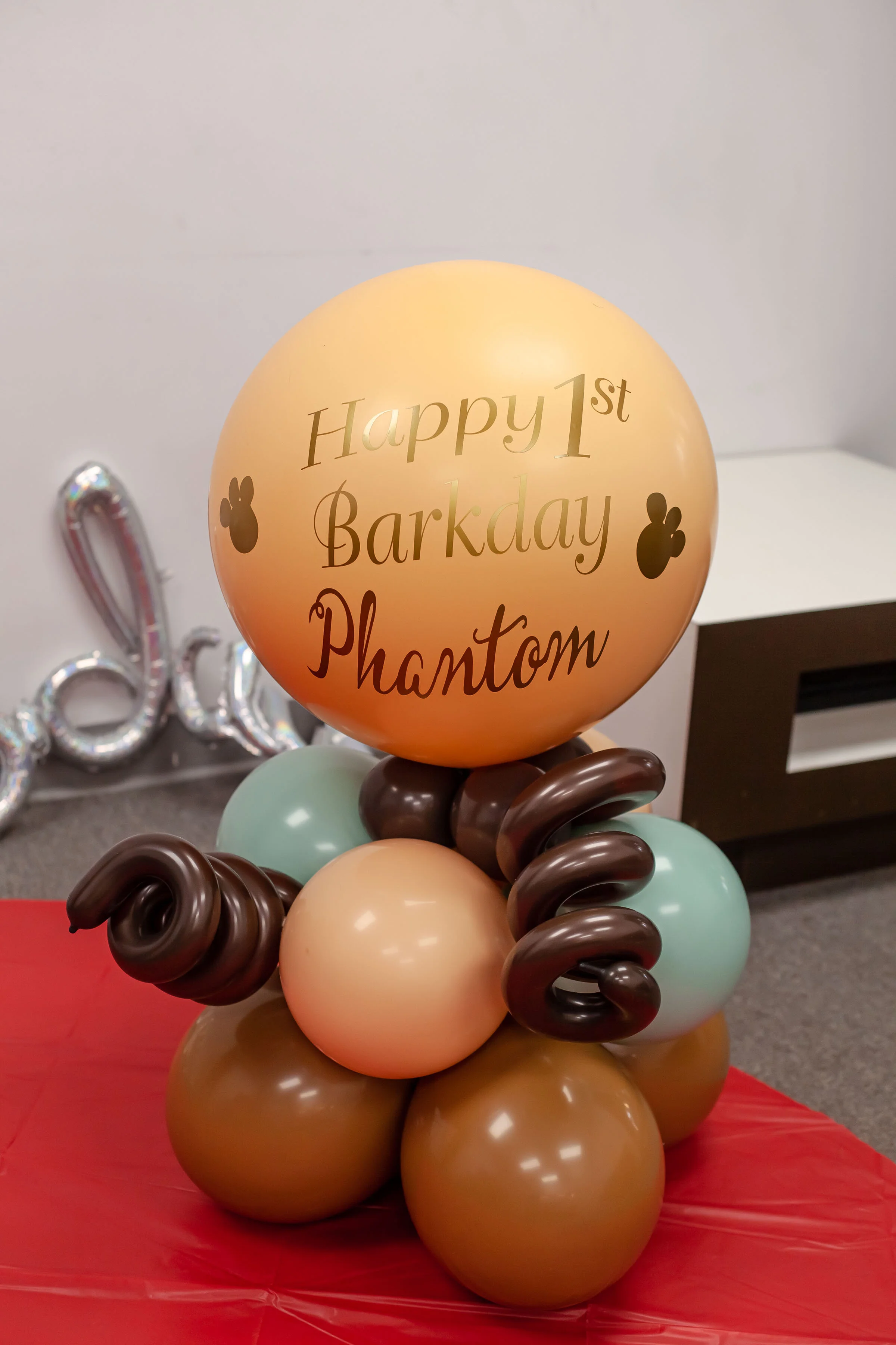 Success (kind of), part 2! Oh how much I love this beautiful goofy face. Phantom is just this big lazy boy personality, covered in brown tiger stripes. That is how I chose his theme - Into the Woods - which would’ve been fuller if mother nature didn’t thunderstorm outside that day. Themed with earthy colors matched to a bold red pattern, this camera shy big boy very much enjoyed his barkday!