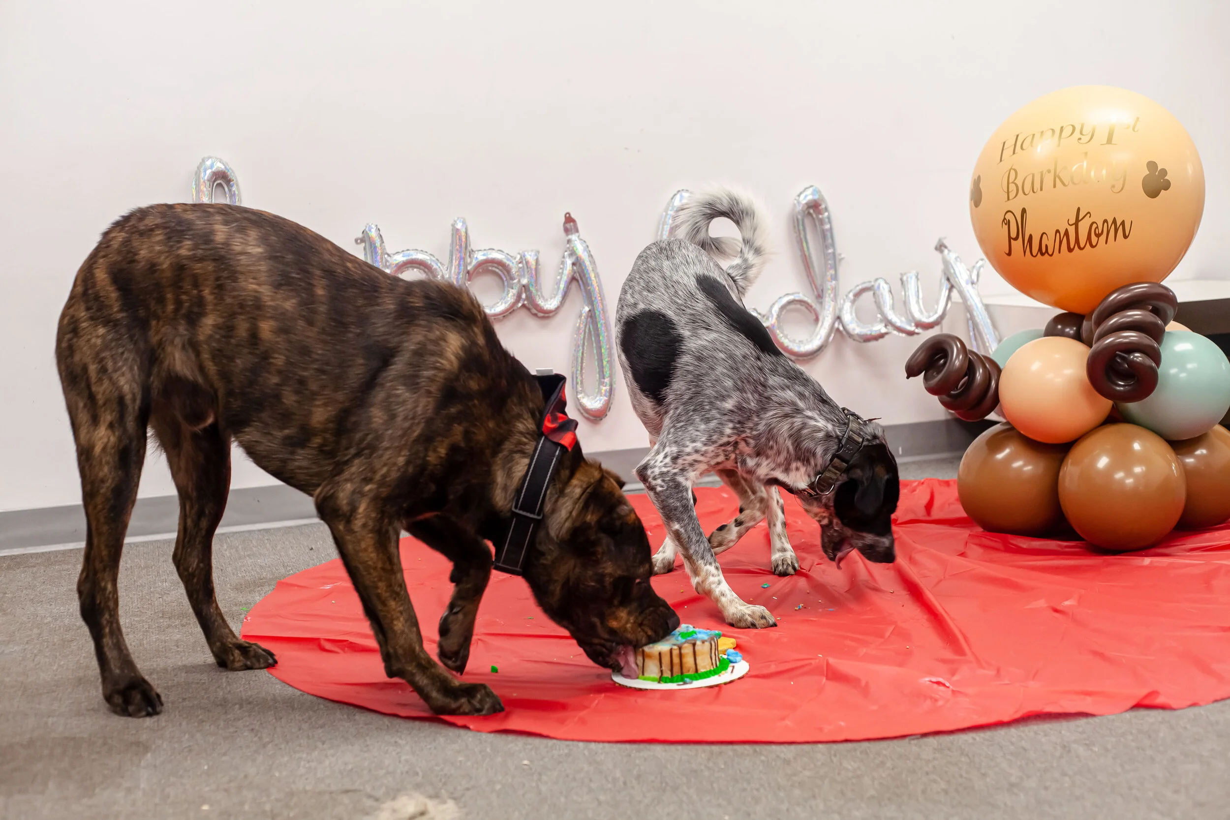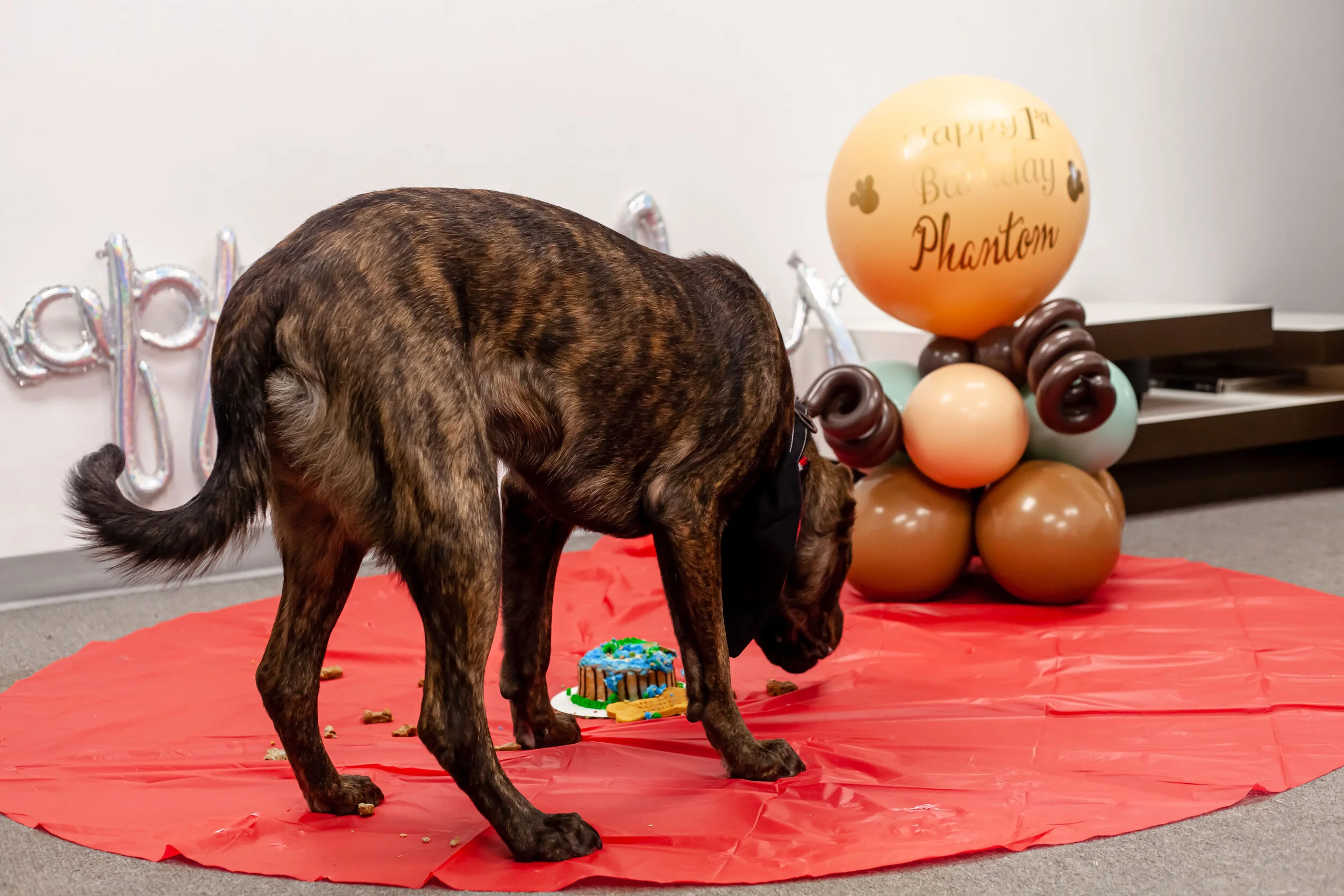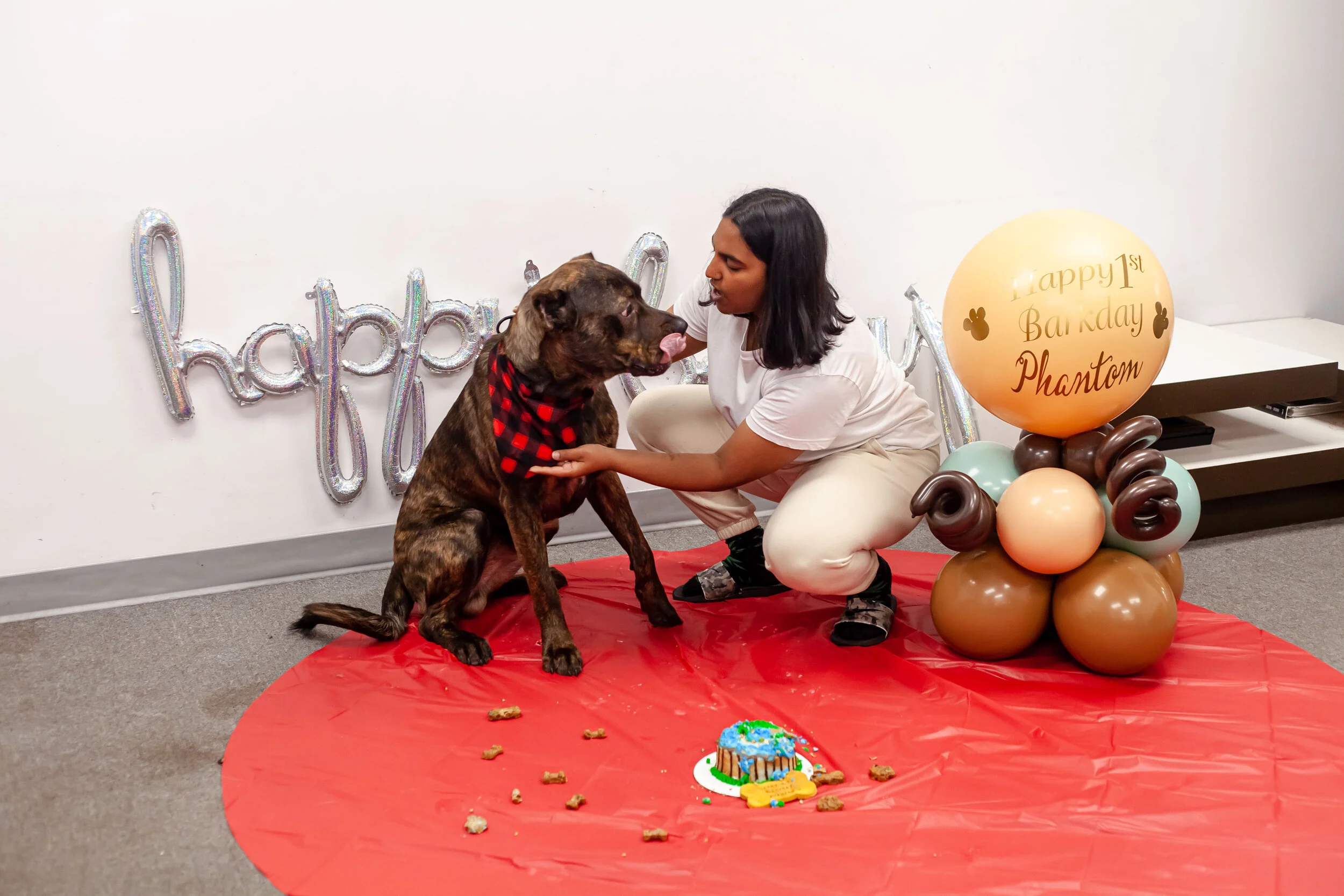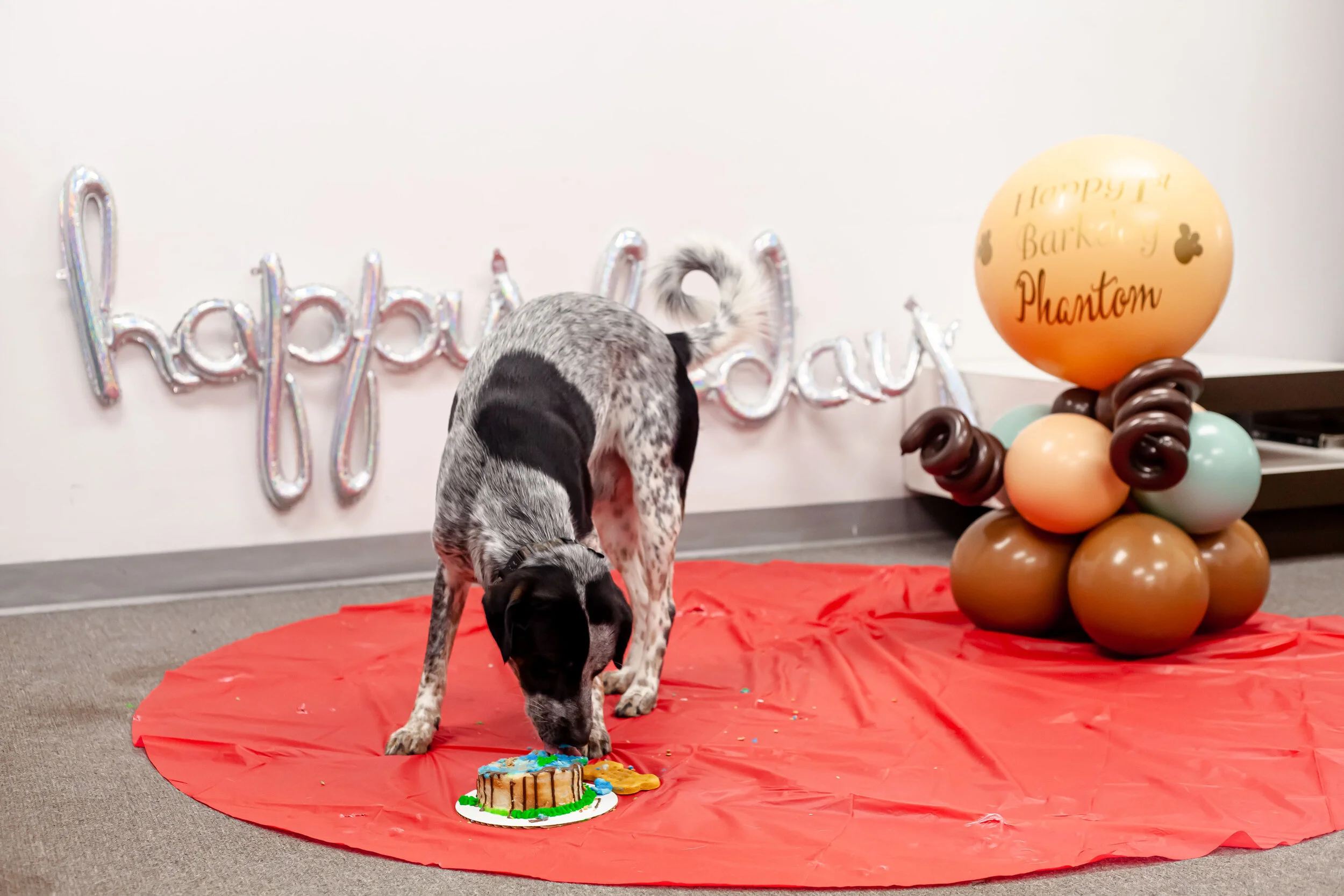 Success (kind of), part 2! Oh how much I love this beautiful goofy face. Phantom is just this big lazy boy personality, covered in brown tiger stripes. That is how I chose his theme - Into the Woods - which would’ve been fuller if mother nature didn’t thunderstorm outside that day. Themed with earthy colors matched to a bold red pattern, this camera shy big boy very much enjoyed his barkday!
